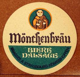 Keywords: Musée Européen de la Bière, Beer coaster pic-064.JPG Möonchenbräu biere d'alsace Photographed through glass own 2012-08-16 16 20 07 AlfvanBeem CC-zero Trademarked Musée Européen de la Bière Nostalgia by Alf van Beem Beermats