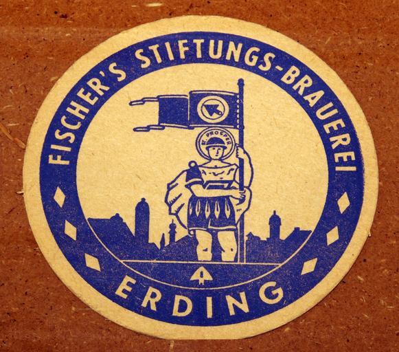 Keywords: Musée Européen de la Bière, Beer coaster pic-114.JPG Fischer's Stiftungs-Brauerei Erding Photographed through glass own 2012-08-16 16 35 45 AlfvanBeem CC-zero Trademarked Musée Européen de la Bière Nostalgia by Alf van Beem Beermats