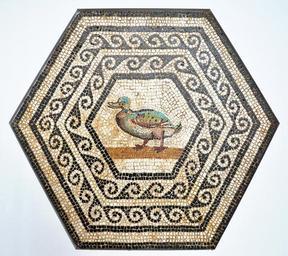 | Keywords: Musée GR de Saint-Romain-en-Gal 27 07 2011 32.jpg fr Mosaïque représentant un canard pierres et pâte de verre fin du 2ème siècle découverte en 1876 à Sainte-Colombe Musée de Saint-Romain-en-Gal-Vienne Gallo-roman mosaic with a duck made with stones and glass end of the 2d century in the Musée de Saint-Romain-en-Gal France 2011-07-28 own Vassil cc-zero Uploaded with UploadWizard Mosaïque du Train Mosaics of ducks Birds in ancient Roman mosaics QualityImage Quality images by Vassil Taken with Nikon D90 |