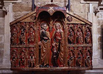 Keywords: Museo de Leon - Retablo de San Marcelo.jpg es Retablo de San Marcelo del s XIII con Marcelo Nonia y sus doce hijos a los lados Museo de León own Bocachete 2007-04 Gothic altar pieces in Spain Marcellus of Tangier Museo de León