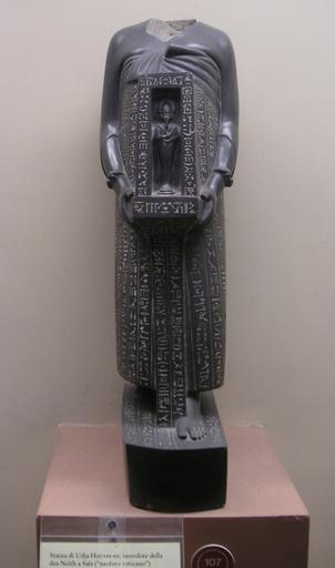 | Keywords: Museo Gregoriano 004a.jpg Statue du dignitaire saïte Oudjahorresné présentant un naos contenant une statuette du dieu Osiris-Hémag qui réside à Saïs - XXVIe et XXVIIe dynasties égyptiennes - Museo Gregoriano du Vatican - Rome 26th or 27th Dynasty Sais Egypt-Capital of the 5th Nome at the time travail personnel / Minolta DiMAGE Xt 07/05/2008 Neithsabes 100px Naophorous statue with Osiris Ancient Egyptian art from Sais Statues of the 26th dynasty of Egypt Statues of the 27th dynasty of Egypt Hieroglyphs on statues Ancient Egyptian art in the Museo Gregoriano Egizio Udjahorresnet |