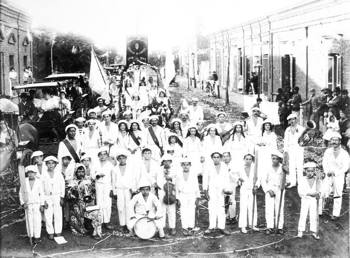 | Keywords: Museo Histórico Alfredo E. Múlgura - Sociedad Coral en los Carnavales de 1908, General Belgrano.jpg es Integrantes de la Sociedad Coral Musical Juventud Belgranense en el Carnaval de enero de 1908 Fotografia tomada en calle Rondeau entre Guido y Güemes Para los belgranenses era un acontecimiento esperado con ansiedad todo el año En las primeras décadas de 1900 el corso de la calle Rondeau era el paseo obligado para toda la familia largas filas de carruajes comparsas juegos con serpentinas papel picado y flores Años mas tarde ocuparían la calle Maipú Completaban estas fiestas los bailes de disfraz y fantasía en casas de familia y en el salón del Sr Bernaschina o en la Sociedad Italiana Las damas competían con trajes exóticos y elaborados Hacia fines de los años 40 al compás de las orquestas típicas y de jazz llegará la moda de los bailes en el Club Belgrano Hotel Nuevo y Club Social Los niños desfilaban con gracia e ingenuidad luciendo algunos trajes lujosos otros sencillos pero todos muy destacados por la creatividad e ingenio de las modistas depicted people depicted place General Belgrano Provinz Buenos Aires Argentinien General Belgrano provincia de Buenos Aires Argentina General Belgrano Buenos Aires Province Argentina 1908-01 Institution Alfredo E Múlgura Historical Museum object history exhibition history credit line accession number Institution Alfredo E Múlgura Historical Museum Museo Alfredo E Múlgura PD-AR-Photo Uploaded with UploadWizard Images from the Alfredo E Múlgura Historical Museum Carnivals of Argentina History of Carnival |