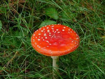 Keywords: mushroom fly agaric red white forest green grass nature