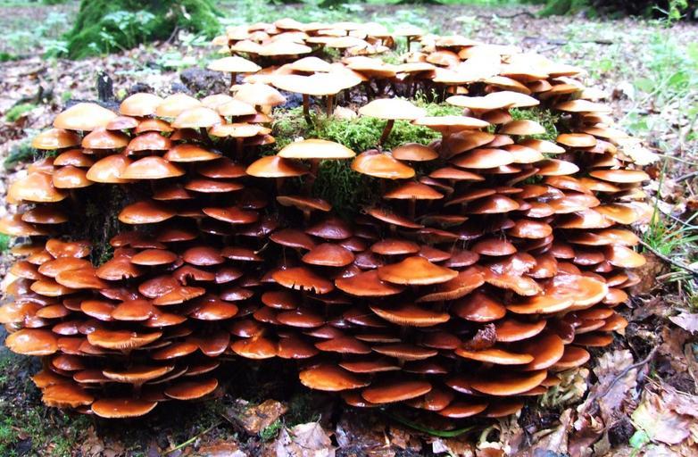 Keywords: mushroom forest leaves dead wood autumn europe fungus sociable kuehneromyces