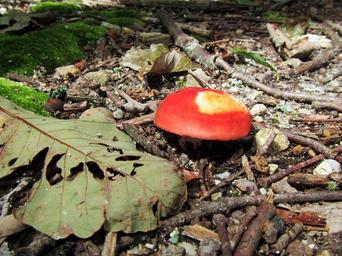 Keywords: mushroom nature woods autumn red fungi leaves twigs ground