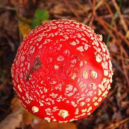 Keywords: mushroom top view red with white dots toxic forest autumn nature agaric