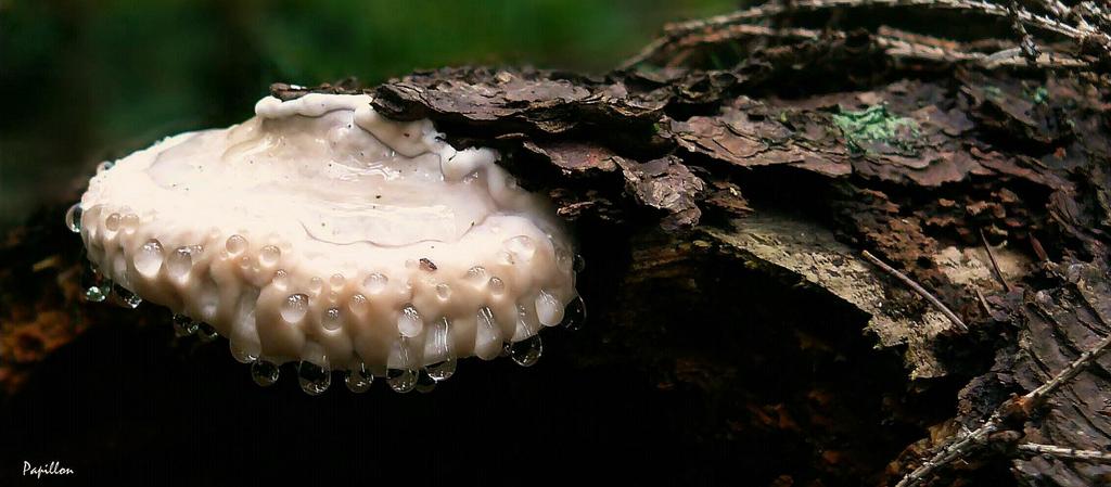 Keywords: mushroom tree fungus log tree stump structure drip mushroom water drop forest plant shiny close beaded transparent macro close up plant macro photo sparkle