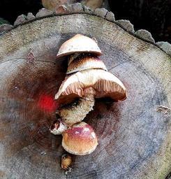 Keywords: mushrooms autumn forest nature tree stump wood autumn mood