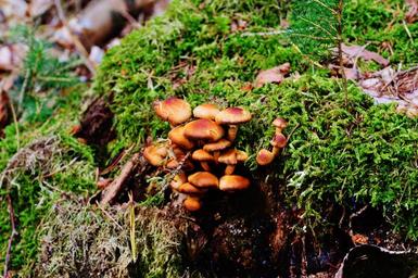 Keywords: mushrooms tree stump nature forest fungus on tree stump wood tree fungus morsch log small mushroom