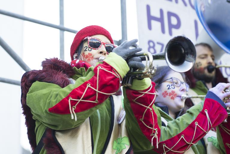 Keywords: music carnival instruments trumpet woman colorful melted glarus andi garba