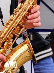 Keywords: music musician instrument entertainment brass instrument saxophone band live big band wind instrument