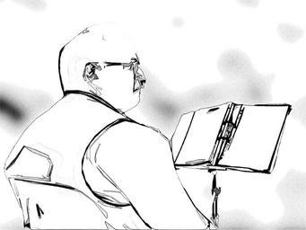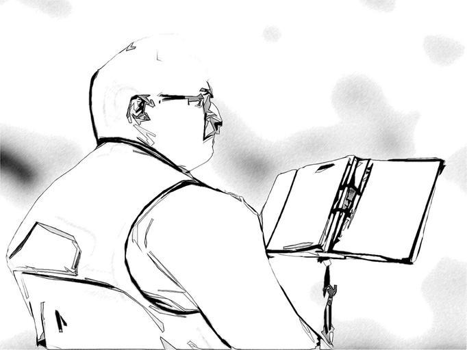 Keywords: musician music stand empty leaf notenblatt wait use asking waiting off schematic drawing black white black and white orchestra