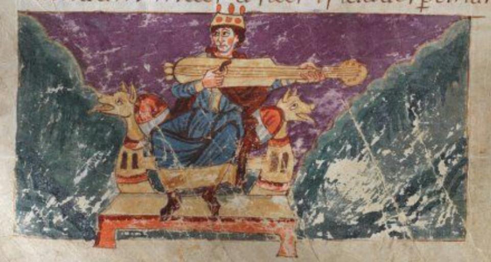 Keywords: Musician playing a medieval cythara 4.jpg en usician playing a cythara from the Stuttgart Psalter The instrument identity was identified from text near the image 0820-01-01 http //digital wlb-stuttgart de/sammlungen/sammlungsliste/werksansicht/ no_cache 1 tx_dlfid 1343 tx_dlfpage 200 tx_dlfdouble 0 cHash f86314c62b1628ba1efed0a87101b26b author other versions Published in manuscript at the scriptorium at St Germain-des-Prés Paris France c 820 a d PD-old-70-1923 Medieval Cythara Stuttgarter Psalter - Württembergische Landesbib Bibl fol 23 Medieval miniatures of musicians Lutes in art String instruments String instruments in art Lute family instruments Guitar family instruments