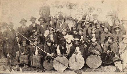 | Keywords: Musicos Mapuches en 1916.jpg es Una banda de músicos araucanos con sus instrumentos y algunos curiosos que fueron a una fiesta indígena en los alrededores de Temuco http //www memoriachilena cl/602/w3-article-124275 html Loyola 1916 PD-old Mapuche people |