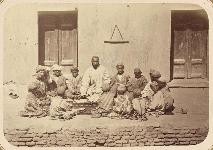 | Keywords: Muslim School, or Mekteb-khane WDL10757.png Artwork ru Кун Александ Людвигович 1840 1888 гг fr Kun Aleksandr L 1840-1888 en Kun Aleksandr L 1840-1888 zh 亚历山大·L· ,1840-1888 年 pt Kun Aleksandr L 1840-1888 ar كُن، ألكسندر ل ، 1840-1888 es Kun Aleksandr L 1840-1888 ru усульманская школа или ектеб-ханэ fr École musulmane ou mekteb-khane en Muslim School or Mekteb-khane zh 穆斯林学校或 Mekteb-khane pt Escola muçulmana ou Mekteb-khane ar مدرسة مسلمين أو مكتب-خانة ru Эта фотог афия входит в этног афическую часть <em> Ту кестанского альбома </em><em></em> всесто оннего исследования Цент альной Азии п едп инятого после того как в 1860-х годах в егионе установилось господство Российской импе ии Альбом созданный по аспо яжению гене ала Константина Пет овича фон Кауфмана 1818 1882 годы пе вого гене ал-губе нато а оссийского Ту кестана состоит из четы ех частей в шести томах «Часть а хеологическая» два тома «Часть этног афическая» два тома «Часть п омысловая» один том и «Часть исто ическая» один том Основным составителем альбома был оссийский востоковед Александ Людвигович Кун аботавший совместно с иколаем Венедиктовичем Богаевским В альбоме п едставлено около 1200 фотог афий а также а хитекту ные планы аква ельные исунки и ка ты «Часть этног афическая» включает в себя 491отдельную фотог афию на 163 листах а фотог афиях изоб ажены п едставители азличных на одов егиона листы 1 33 повседневная жизнь и итуалы листы 34 91 а также виды де евень и го одов уличные то говцы и комме ческая деятельность листы 92 163 <br> альчики; Этног афические фотог афии; усульмане; Фотог афические исследования; Школы; Студенты; Учителя; Тю кские на оды fr Cette photographie est extraite de la partie ethnographique de l'<em>Album du Turkestan</em> étude visuelle complète de l'Asie centrale entreprise après que l'Empire russe prit le contrôle de la région dans les années 1860 Commandé par le général Konstantin Petrovich von Kaufman 1818 1882 premier gouverneur général du Turkestan russe l'album est composé de six volumes en quatre parties la partie archéologique deux volumes la partie ethnologique deux volumes la partie sur les métiers un volume et la partie historique un volume L'album fut essentiellement compilé par l'orientaliste russe Aleksandr L Kun assisté de Nikolai V Bogaevskii Il comporte près de 1200 photographies et inclut également des plans architecturaux des dessins à l'aquarelle et des cartes La partie ethnographique compte 491 photographies sur 163 planches montrant des individus des différentes peuplades de la région planches 1 à 33 des scènes de la vie quotidienne et des rites planches 34 à 91 ainsi que des vues de villages et de villes de vendeurs ambulants et d'activités commerciales planches 92 à 163 <br>Garçons; Photographies ethnographiques; Musulmans; Inventaires photographiques; Écoles; Étudiants; Enseignants; Peuples turciques en This photograph is from the ethnographical part of <em>Turkestan Album</em><em> </em>a comprehensive visual survey of Central Asia undertaken after imperial Russia assumed control of the region in the 1860s Commissioned by General Konstantin Petrovich von Kaufman 1818 82 the first governor-general of Russian Turkestan the album is in four parts spanning six volumes Archaeological Part two volumes ; Ethnographic Part two volumes ; Trades Part one volume ; and Historical Part one volume The principal compiler was Russian Orientalist Aleksandr L Kun who was assisted by Nikolai V Bogaevskii The album contains some 1 200 photographs along with architectural plans watercolor drawings and maps The Ethnographic Part includes 491 individual photographs on 163 plates The photographs show individuals representing the different peoples of the region Plates 1 33 ; daily life and rituals Plates 34 91 ; and views of villages and cities street vendors and commercial activities Plates 92 163 <br>Boys; Ethnographic photographs; Muslims; Photographic surveys; Schools; Students; Teachers; Turkic peoples zh 这张照片出自<em> 其斯 相册 </em><em> </em>的民族部分,该相册是俄罗斯 国 19 世纪 60 年代取得中亚控制 后, 手制 的 部针对该 区的综合 图像调查记录 相册由俄罗斯驻 其斯 (俄罗斯 国中亚属 的名称)首任 康斯 丁·彼得罗维奇·凡· 夫曼(Konstantin Petrovich von Kaufman,1818 82 年)将军赞助完成,共分六卷,四个部分: 古部分 (两卷); 民族部分 (两卷); 贸易部分 ( 卷)和 历史部分 ( 卷) 相册的主要编纂人是俄罗斯 方学 亚历山大·L· Aleksandr L Kun 亚历山大是 尼可莱·V·柏盖维斯基 Nikolai V Bogaevskii 的协助下完成相册的编纂 相册共含 1200 张照片,另 建筑平 图 水彩画和 图 民族部分 包括 491 张个人照,占 163 页 照片展现了该 区各个民族的人物形象(1-33 页) 日常生活和礼仪(34-91 页)以及城市 庄 街头摊贩和商业活动 景(92-163 页) <br>男孩; 民族照片; 穆斯
