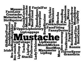 Keywords: mustache silhouette facial hair face upper lip male man macho masculine word cloud tag cloud weighted list typography type text words slang