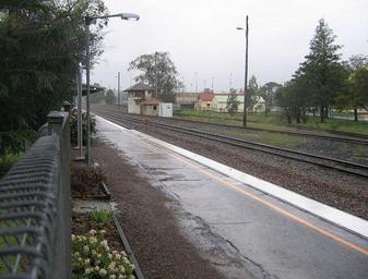 Keywords: 32 16S 150 53E Muswellbrook railway station is located on the Main Northern line in New South Wales, Australia. It serves the town of Muswellbrook. Opened 19 May 1869. attribution: Athol Mullen