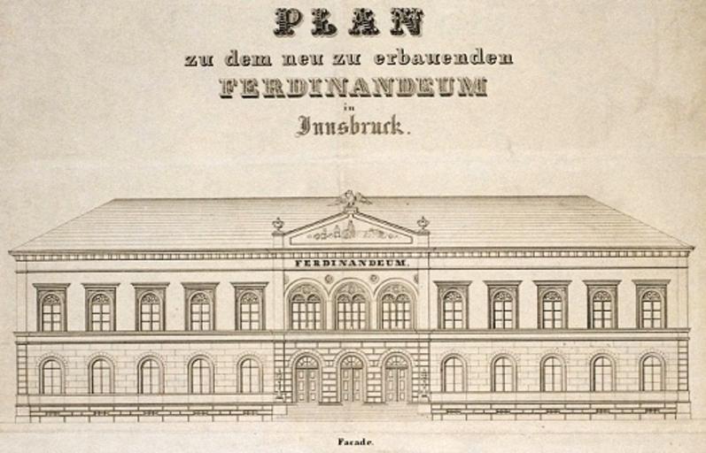 | Keywords: Mutschlechner Ferdinandeum 1.jpg Anton Mutschlechner Entwurf zum ersten Gebäude des Tiroler Landesmuseums Ferdinandeum Innsbruck 1842 umgebaut 1884 “1886 Webseite Ferdinandeum Insbruck http //sammellust tiroler-landesmuseum at/page/objekte/1843b 1842 Anton Mutschlechner 1785-1846 Main building of Tiroler Landesmuseum PD-old-100 |