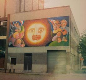 | Keywords: Muurschildering Leeuwarden.jpg Sol Zon muurschildering van de Chileense kunstenaar Jorge Kata Núñez op concertgebouw 'Harmonie' in Leeuwarden Sol Sun wall painting by Chilean artist Jorge Kata Núñez in Leeuwarden the Netherlands own 1987-08-13 Apdency Murals in the Netherlands Buildings in Leeuwarden Monuments and memorials to Salvador Allende Christians from Chile Relations of Chile and the Netherlands Graffiti of sun Sun with faces People with the sun in art 1987 in the Netherlands Graffiti in Leeuwarden Unidentified personalities On the right side of the mural we see what I believe to be a Chilean flag and two persons one of them with a Bible so probably a clergic; the other resembles Salvador Allende I think that might have to do with Chilean history left of the sun there's someone bearing the flag of Friesland the Dutch province of which Leeuwarden is the capital Does anyone know who the depicted Chilean men are |