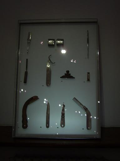 | Keywords: Muzeum Zamku i Szpitala Wojskowego na Ujazdowie 20080803 12.jpg pl Muzeum Zamku i Szpitala Wojskowego na Ujazdowie - zdjęcie z wnętrza muzeum sprzęt rehabilitacyjny z lat 1939-1945 zaprojektowany i wykonany przez p Stefana Cieślewskiego - inwalidy bez rąk 1 Nożyczki dla inwalidy 2 Obrączki do montażu sprzętu rehabilitacyjnego 3 Pinceta chirurgiczna wsuwana za metalową obrączkę służyła do chwytania przedmiotów np pióra 4 Pilnik w oprawce do wsuwania za opaskę aluminiową na przedramię 5 kula jako uniwersalna proteza robocza do wsuwania pod obrączkę używana jako uchwyt przedmiotów 6 Uchwyt do papieru listowego rysunkowego 7 Cążki do obcinania paznokci 8 Szczotka do czesania przymocowana do metalowego przedłużenia wsuwanego pod obrączkę 9 Nóż z widelcem 10 Przyrząd do zapinania guzików 11 Grzebień metalowy do czesania przymocowany do metalowego przedłużenia wsuwanego pod obrączkę own Thunderman83 Muzeum Zamku i Szpitala Wojskowego na Ujazdowie |