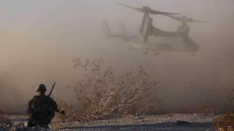 Keywords: Marine Regiment native Norwood Mass MV-22B Osprey takes off during air assault Military Operation