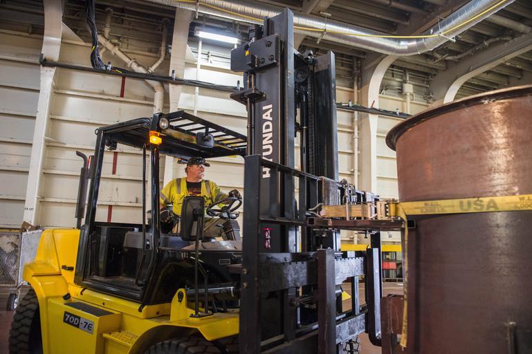 Keywords: MV Cape Ray 140617-N-XB010-003.jpg en Chuck Kyle chemical operator for Edgewood Chemical Biological Center aboard MV Cape Ray uses a forklift to maneuver a full-size model chemical agent container to the Field Deployable Hydrolysis System for neutralization on the ship during an exercise in operating the FDHS Cape Ray is tasked with the neutralization of specific chemical materials from Syria in accordance with the Organization for the Prohibition of Chemical Weapons guidelines while operating in international waters 2014-06-17 ECBC https //www dvidshub net/image/1433593 140617-N-XB010-003 2014-07-03 10 03 NAVAL STATION ROTA ES PD-USGov-Military-Navy Ships at Naval Station Rota Images from DoD uploaded by Fæ |