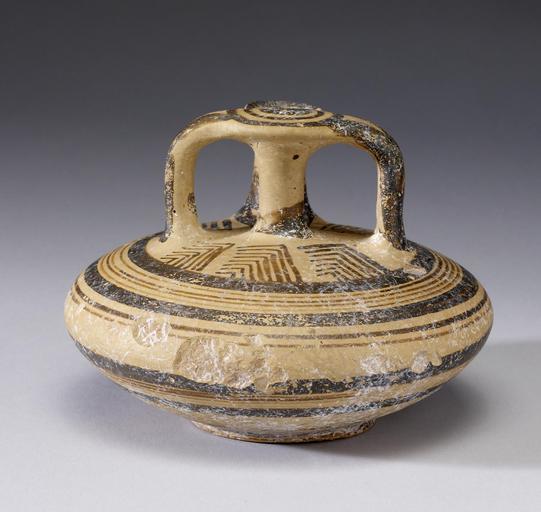 | Keywords: Mycenaean - Stirrup Jar - Walters 482084 - Back.jpg This jar is named for its handle which resembles a stirrup Originally created in Crete in the 16th century BC the stirrup jar was extremely popular throughout the Aegean region for both storage and transport and became the most characteristic Mycenaean vessel type The simple decoration looks forward to the Geometric style which began in 10th-century BC Greece ca 1200 BC late Helladic IIIA-B terracotta cm 8 5 accession number 48 2084 12807 E Hollis Hopkins Baltimore date and mode of acquisition unknown Walters Art Museum 1955 by purchase Museum purchase 1955 place of origin Crete Greece Walters Art Museum license Ancient Greek pottery in the Walters Art Museum Mycenaean pottery Media contributed by the Walters Art Museum needs category review |