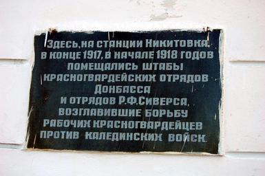 Keywords: Mykytivka Don memorial3.jpg en Railway station Mykytivka in Gorlivka town Memorial board uk Станція икитівка в м Го лівка емо іальна дошка own Igor Rozkladaj 2009-08-21 1917 Mykytivka Railway Station