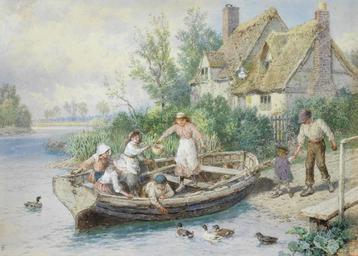 | Keywords: Myles Birket Foster The ferry.jpg The ferry; signed with monogram lower left ; watercolour heightened with bodycolour; 27 5 x 40 cm http //www bonhams com Bonhams by 1899 Creator Myles Birket Foster PD-old-100 Images from Bonhams Myles Birket Foster Ferries in art |