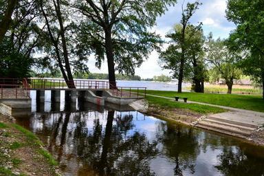 Keywords: Mysla i Jezioro Mysliborskie.jpg pl Myśla wpadająca do Jeziora Myśliborskiego w Myśliborzu own Kapitel 2011 Cc-zero Myśla Myślibórz Myśliborskie Lake