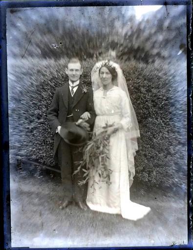 | Keywords: glass negative 1915 mystery wedding bride groom flowers hat garden public domain publicdomain outdoor See set description for further information about this batch of glass plate negatives See set description for further information about this batch of glass plate negatives |