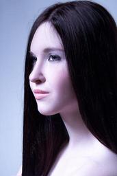 Keywords: mystical portrait of a girl eyes black background girl hair makeup model person woman view female beauty bright long hair vampire girl a vampire facial expressions hairstyle posture studio