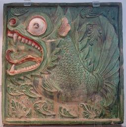 | Keywords: Mythical fish Makara tomb tile, China, 550-600 AD, glazed earthenware - Royal Ontario Museum - DSC04071.JPG en Exhibit in the Royal Ontario Museum Toronto Ontario Canada This work is old enough so that it is in the public domain Photography was permitted in the museum without restriction 2013-10-08 14 39 17 own Daderot cc-zero Chinese tomb tiles in the Royal Ontario Museum Uploaded with UploadWizard Makara in China | ||||