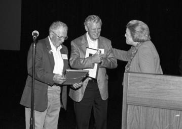 | Keywords: doc watson docwatson music blackandwhite monochrome black and white Doc Watson (middle) and DCR Secretary Betty Ray McCain (right) at the North Carolina Folk Heritage Awards in 1994, Raleigh, NC. From the General Negative Collection, State Archives of North Carolina. Doc Watson (middle) and DCR Secretary Betty Ray McCain (right) at the North Carolina Folk Heritage Awards in 1994, Raleigh, NC. From the General Negative Collection, State Archives of North Carolina. | ||||
