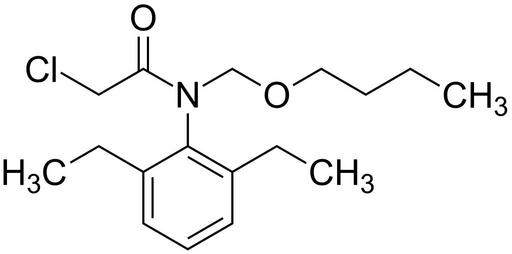 | Keywords: N-(butoxymethyl)-2-chloro-N-(2,6-diethylphenyl)acetamide 200.svg validSVG Structure of N- butoxymethyl -2-chloro-N- 2 6-diethylphenyl acetamide Own 2014-03-31 Emeldir <span class signature-talk >talk</span> Chemical structure verified https //upload wikimedia org/wikipedia/commons/a/a4/N- 28butoxymethyl 29-2-chloro-N- 282 2C6-diethylphenyl 29acetamide_200 svg 1S/C17H26ClNO2/c1-4-7-11-21-13-19 16 20 12-18 17-14 5-2 9-8-10-15 17 6-3/h8-10H 4-7 11-13H2 1-3H3 HKPHPIREJKHECO-UHFFFAOYSA-N 23184-66-9 PD-chem Herbicides Acetanilides |