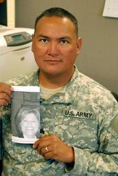 | Keywords: N.M. Guardsman Misses Family, but Finds Meaning in Mission DVIDS82753.jpg en New Mexico Army National Guard soldier Mitchell Ration displays a picture of his wife March 21 2008 Ration a family man loves his job in the Joint Task Force Legal Assistance Office but misses his wife and kids back in Albuquerque JTF Guantanamo conducts safe and humane care and custody of detained enemy combatants The JTF conducts interrogation operations to collect strategic intelligence in support of the Global War on Terror and supports law enforcement and war crimes investigations JTF Guantanamo is committed to the safety and security of American service members and civilians working inside its detention facilities 2008-03-21 Petty Officer 2nd Class Cheryl Dilgard https //www dvidshub net/image/82753 080403-N-+++++-002 2008-04-03 11 01 GUANTANAMO BAY CU PD-USGov-Military-Navy Guantanamo Bay Images from DoD uploaded by Fæ |