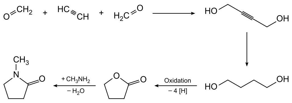 | Keywords: N-methy-2-pyrrolidone-synthesis.svg  ValidSVG Synthese von N-Methyl-2-pyrrolidon NMP Synthesis of N-methyl-2-pyrrolidone NMP Own 2010-01-31 Sponk <span class signature-talk >talk</span> PD-chem N-Methyl-Pyrrolidon png Wikipedia de File Chemical syntheses |