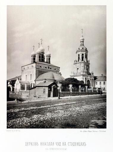 | Keywords: N.A.Naidenov (1883) V4.56 Nikolay na Studentsah.png Це ковь свт иколая на Студенце Таганская улица осква Фото с запада с п отивоположной сто оны Семеновской ныне Таганской улицы виден угол Генд икова пе еулка пе еулок аяковского Колокольня не сох анилась Church of St Nicholas in Studentsy Moscow Plate 56 vol 4 of иколай айденов осква Собо ы монасты и це кви 1883 <br>Online source http //imwerden de/pdf/najdenov_moskovskie_sobory_tom4_1883 pdf Photographed in 1882 published in 1883 Nikolai Naidenov 1834-1905 PD-Old-100 thumb left cropped 55 44 25 640215933871104 N 37 39 40 078125 E Church of Saint Nicholas in Studentsy Historical images of Zayauzye Historical images of streets and squares of Moscow Naidenov Album 1882 4 56 Photographs by Nikolay Naidenov |