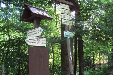 Keywords: Na šestce.JPG cs Rozcestník v lesích mezi Sokolem a Hvozdem v Lužických horách own Zákupák 2012-06-29 Labels of walking route E3 in Liberec District Hiking and footpath fingerposts in Liberec District Heřmanice v Podještědí