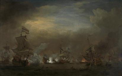 | Keywords: Nachtelijk gevecht tussen Cornelis Tromp op de 'Gouden Leeuw' en Sir Edward Spragg op de 'Royal Prince' tijdens de zeeslag bij Kijkduin, 21 augustus 1673; episode uit de Derde Engelse Rijksmuseum SK-A-2393.jpeg accession number SK-A-2393 Creator Willem van de Velde II credit line nl Nachtelijk gevecht tussen Cornelis Tromp op de 'Gouden Leeuw' en Sir Edward Spragg op de 'Royal Prince' tijdens de zeeslag bij Kijkduin 21 augustus 1673 episode uit de Derde Engelse Zeeoorlog 1672-74 Rechts van de Royal Charles het zinkende Hollandse oorlogsschip 'Gouden Leeuw' drager Height cm 114 drager Width cm 183 exhibition history 2007-2012 Inrichting Trompenburg 's-Graveland 2005-2008 Het Rijksmuseum aan de Hofvijver - B Den Haag Institution Rijksmuseum Technique oil canvas object history Published in sale catalog 1906 of Frederik Muller Co Amsterdam; Acquisition by museum 1909-08-01 object type Potential derivatives exist check http //commons wikimedia org/w/index php search Rijksmuseum+SK-A-2393 this search <gallery>File Image from page 20 of Catalogus van eenige kostbare oude schilderijen door Hollandsche meesters uit de 17e eeuw waaronder een hoogstbelangrijk portret door Johannes Verspronck 1906 14589704337 jpg</gallery> PD-US PD-old Data and photography rights All data and all images made available through the API are either in the public domain or are subject to a CC0 license https //www rijksmuseum nl/en/api/terms-and-conditions-of-use cc-zero place of creation Luc Panhuysen Het einde van het Rampjaar Volkskrant bijlage Nederland en de Zee 9 oktober 2010 p 15 P Sigmond 'Collectie Zeeslagen en zeehelden in de Gouden Eeuw Maritieme geschiedenis in het De Ruyterjaar' Rijksmuseum Kunstkrant 33 2007 nr 2 p 5-8 afb Documentatiemap Schilderijen aantekeningen R van Luttervelt voor 1963 http //www rijksmuseum nl/collectie/SK-A-2393 Nachtelijk gevecht tussen Cornelis Tromp op de 'Gouden Leeuw' en Sir Edward Spragg op de 'Royal Prince' tijdens de zeeslag bij Kijkduin 21 augustus 1673 episode uit de Derde Engelse Zeeoorlog 1672-74 Q17328733 Uploaded with GWToolset Nachtelijk gevecht tussen Cornelis Tromp op de 'Gouden Leeuw' en Sir Edward Spragg op de 'Royal Prince' tijdens de zeeslag bij Kijkduin 21 augustus 1673; episode uit de Derde Engelse Rijksmuseum SK-A-2393 http //www rijksmuseum nl/media/assets/SK-A-2393 Images uploaded by Fæ Images from the Rijksmuseum Paintings in the Rijksmuseum Amsterdam Willem van de Velde II Battle of Texel |