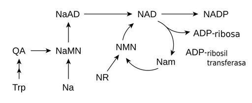 | Keywords: NAD metabolism spanish.svg Biosynthesis and salvage pathways in NAD+ and NADP+ metabolism Created using http //www acdlabs com/download/chemsk html ACD/ChemSketch 10 0 and Inkscape ;Legend Trp tryptophan QA quinolinic acid Na nicotinic acid NaMN nicotinic acid mononucleotide NaAD nicotinic acid adenine dinucleotide NAD nicotinamide adenine dinucleotide NADP nicotinamide adenine dinucleotide phosphate NR nicotinamide riboside NMN nicotinamide mononucleotide Nam nicotinamide ADP-ribose adenosine diphosphate ribose NAD_metabolism svg 2010-12-10 16 56 UTC NAD_metabolism svg Fvasconcellos 20 31 9 December 2007 UTC w Image NAD metabolism png by Tim Vickers derivative work Gustavocarra <span class signature-talk >talk</span> NAD_metabolism svg Metabolic pathways Nicotinamide adenine dinucleotide |