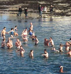 | Keywords: Nagegie d'Noué au Hâvre des Pas Jèrri 25 d'Dézembre 2010 08.jpg Lé 25 d'Dézembre 2010 un fliotchet d'monde lus bangnîtent s'lon la couôteunme dans la bangnérêsse du Hâvre des Pas Saint Hélyi Jèrri The traditional Christmas Day swim at Havre des Pas bathing pool brought a crowd of swimmers supporters and spectators out on 25th December 2010 in Saint Helier Jersey own photo 2010-12-25 Man vyi Own work all rights released Public domain Christmas 2010 in Jersey 2010 in Saint Helier Jersey People of Jersey in 2010 Swimming in Jersey Winter swimming 2010 in swimming Taken with Canon PowerShot A2100 IS 25 December |