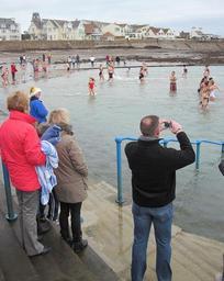Keywords: Nagegie d'Noué au Hâvre des Pas Jèrri 25 d'Dézembre 2011 16.jpg Lé 25 d'Dézembre 2011 un fliotchet d'monde lus bangnîtent s'lon la couôteunme dans la bangnérêsse du Hâvre des Pas Saint Hélyi Jèrri The traditional Christmas Day swim at Havre des Pas bathing pool brought a crowd of swimmers supporters and spectators out on 25th December 2011 in Saint Helier Jersey own photo 2011-12-25 12 08 29 Man vyi 2011 in Saint Helier Jersey People of Jersey in 2011 Christmas 2011 in Jersey Swimming in Jersey 2011 in swimming Winter swimming People photographing Photography in Jersey