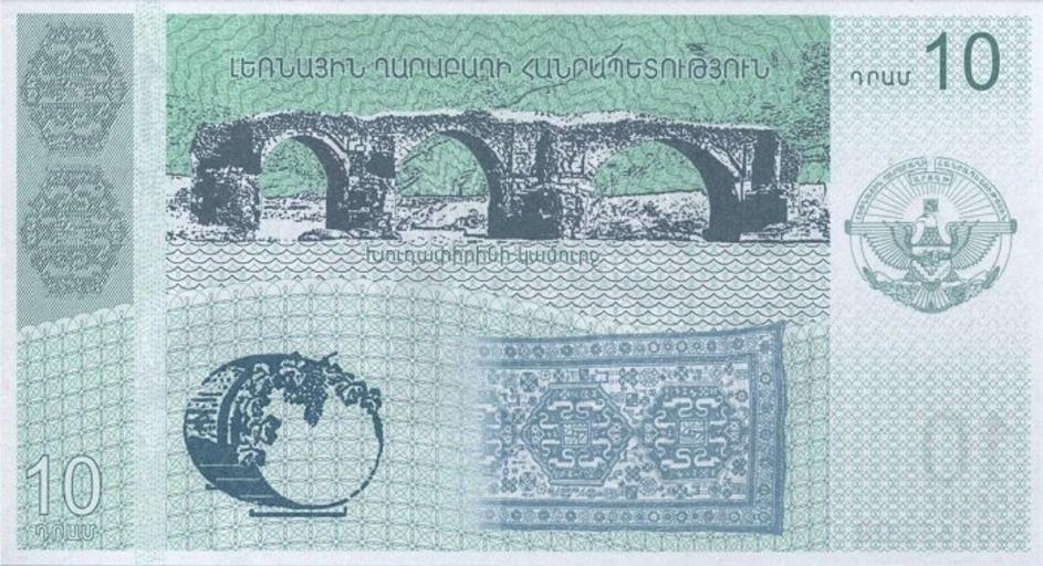 Keywords: NagornoKarabakhP2-10-Dram-2004-donatedta b.jpg es 10 Dram Ron Wise's World Paper Money http //aes iupui edu/rwise Thomas Augustsson photo 2004 PD-NKR-exempt Banknotes of Nagorno-Karabakh Republic Khudafarin bridge with 11 archs Banknotes with a face value of 10 Green banknotes Bridges on banknotes |