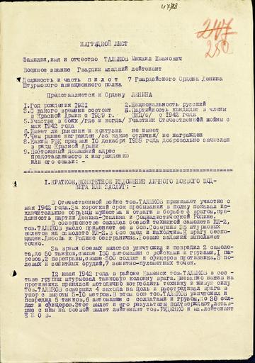 Keywords: Nagr List Talykov 1.jpg Official document for awarding Mikhail Talykov with order of Lenin Mihhail Talõkovile Lenini ordeni andmise käskkiri ru аг адной лист с подтве ждением подвига 1 1942-11-14 PD-RU-exempt SeoSaytum other versions Documents of the Soviet Union 1942 November 1942 in the Soviet Union 1942-11-14 |