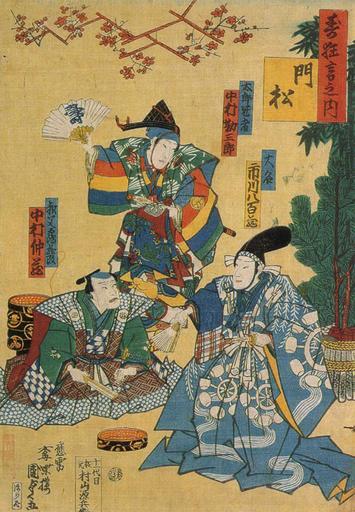 | Keywords: Nakamura Nakazo III, Nakamura Kanzaburo XIII and Ichikawa Yaozo VI (1865).jpg en Kabuki actors Nakamura Nakazo III Nakamura Kanzaburo XIII and Ichikawa Yaozo VI left to right in the dance Kadomatsu staged in September 1865 at the Nakamuraza ukiyo-e by Utagawa Kunisada II same year ru Актё ы кабуки акаму а акадзо III акаму а Кандзабу о XIII и Итикава Яодзо VI в пьесе-танце Kadomatsu поставленном в теат е акаму адза в 1865 году укиё-э Утагавы Кунисады II 1865 год 1865 http //kabuki21 com/nakazo3_kanzaburo13_yaozo6_gf php Creator Utagawa Kunisada II PD-old-100 Uploaded with UploadWizard Ukiyo-e of kabuki actors Chinese dancers in art |