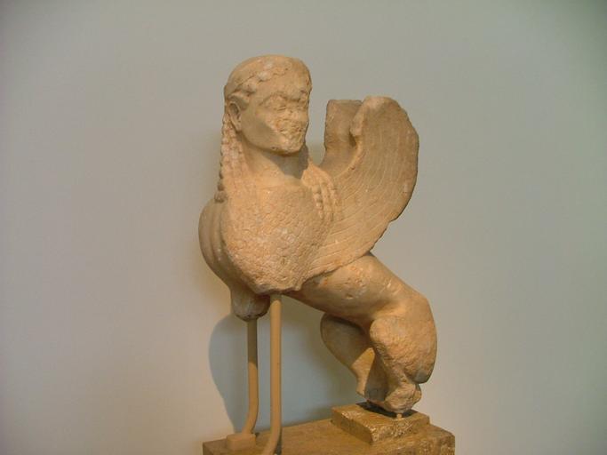 | Keywords: NAMA Statue of a Sphinx 1.JPG en Statue of a Sphinx Parian marble Found in Piraeus It originally crowned a grave stele About 540 B C own Dorieo 2007-08-18 Ancient Greek statues of sphinx Ancient Greek statues in the National Archaeological Museum of Athens Sphynx 540s BC statues Statues in Piraeus Parian marble sculptures |