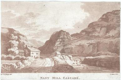 | Keywords: Nant Mill Cascade.jpeg Abstract A view of the waterfall at Betws Garmon showing the bridge and cottage between the mountains Size mm 109 167 exhibition history Institution National Library of Wales Technique print aquatint object history object type PD-old-100-1923 place of creation place of discovery 1128896 Nant Mill Cascade Uploaded with GWToolset Nant Mill Cascade http //dams llgc org uk/behaviour/llgc-id 1128896/fedora-bdef image/reference Images uploaded as part of NLW - WMUK collaboration Welsh Landscape Collection Betws Garmon Afon Gwyrfai 1790s Mountains of Wales Waterfalls in Wales in art Rivers of Wales Dwelling houses |
