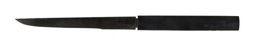 | Keywords: Naotaka - Kozuka with Mounted Samurai under Cherry Blossoms - Walters 5112534 - Back.jpg A samurai rides a horse along the bottom of the kozuka In the middle ground is a cherry tree in bloom and at the back is a structure in the mountains This may be Sakurai near Osaka where the 14th-century warrior Kusunoki Masashige said goodbye to his son Masatsura before Masashige's death at the battle of Minatogawa This is part of a mounted set century 18 Edo shakudo gold cm 21 4 accession number 51 1253 4 39443 Henry Walters Baltimore date and mode of acquisition unknown Walters Art Museum Henry Walters Acquired by Henry Walters Signature Kôshûsai Naotaka kao place of origin Japan Walters Art Museum license Kozuka in the Walters Art Museum Naotaka Media contributed by the Walters Art Museum needs category review |