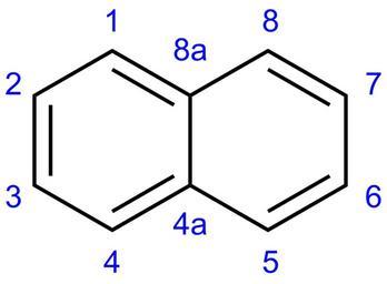 Keywords: Naphthalene numbering.svg Chemical structure of naphthalene showing IUPAC numbering system Own 19 47 13 November 2012 UTC Ed Edgar181 Naphthalene Chemical structures to explain nomenclature